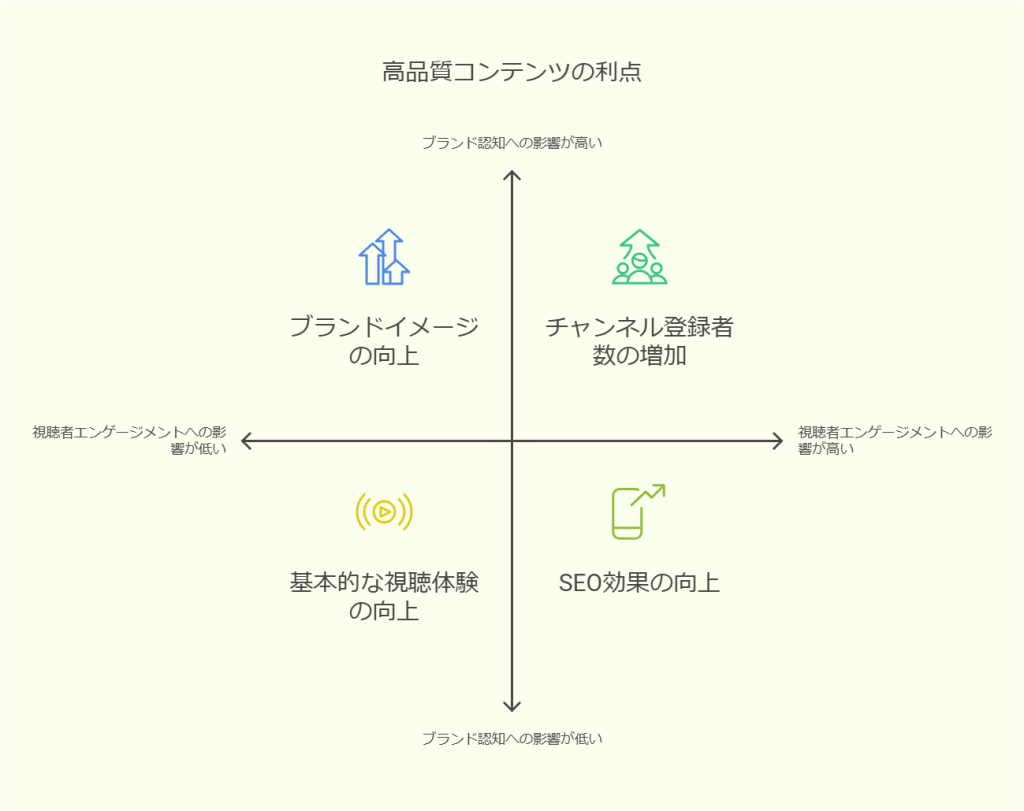 高画質動画は、視聴者のエンゲージメントを高め、チャンネル登録やコメント、高評価に繋がりやすくなります。 これらの要素もSEOに影響を与えるため、画質向上は間接的にSEO効果を高めることにも繋がります。