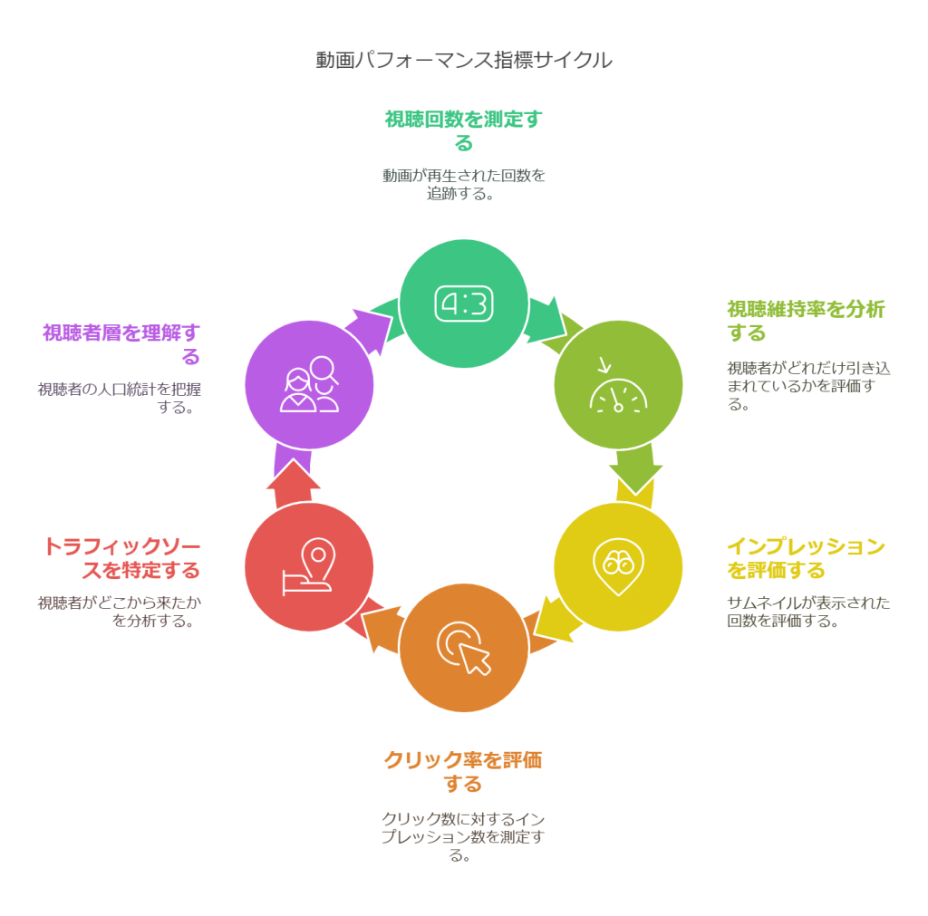 | 視聴回数 | 動画が再生された回数 | 動画の人気を測る基本的な指標。増加傾向にあるかを確認。 |