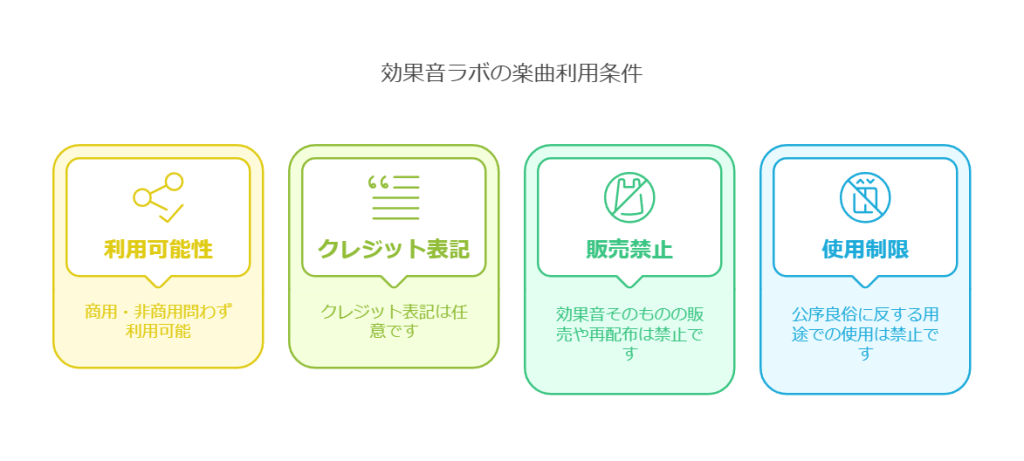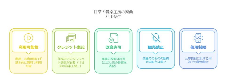 さらに、楽曲ごとに利用条件が明確に表示されており、安心して使用できる環境が整っています。また、新曲が定期的に追加されるため、常に新鮮な素材を利用することが可能です。