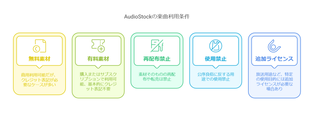 素材サイトによっては、クレジット表記の免除条件がある場合や、有料プランを利用することでクレジット表記が不要になる場合もあります。例えば、AudioStockの有料素材などがこれに該当します。
