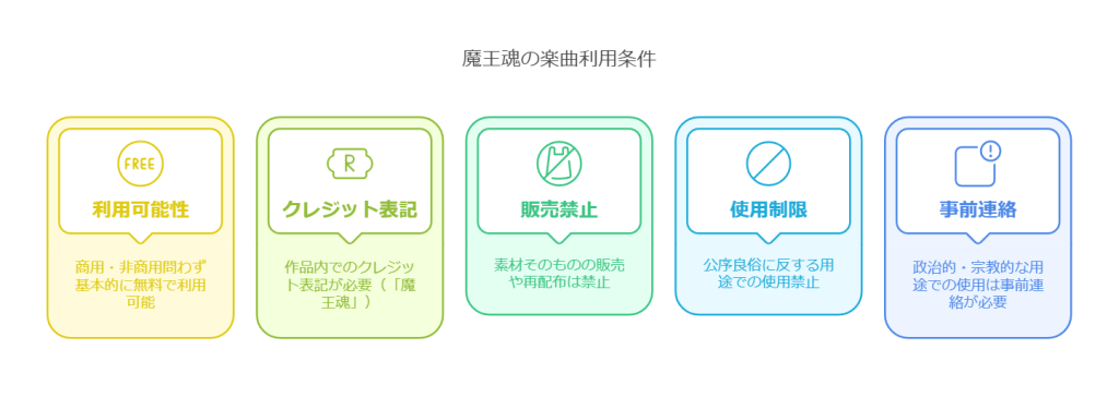 DOVA-SYNDROMEの楽曲は基本的に商用・非商用問わず無料で利用可能です。ただし、いくつかの条件があります: