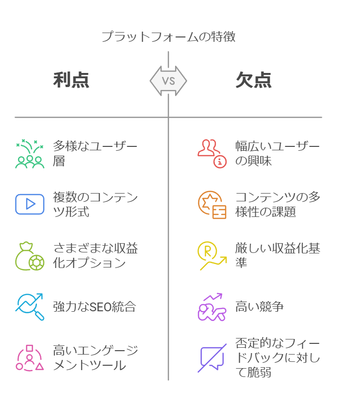 - 各プラットフォームの強みと弱み