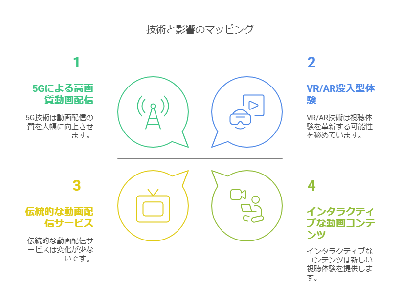 動画視聴を取り巻く環境は、技術革新や視聴者の行動変化によって常に進化しています。ここでは、5G普及、動画配信サービスの進化、VR/AR技術の進展といった主要な変化と、それらが今後の動画視聴体験に及ぼす影響について考察します。