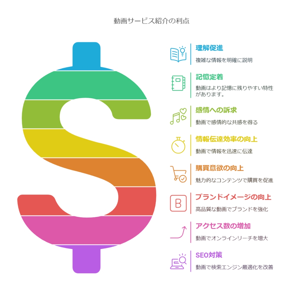 | 購買意欲の向上 | サービスの魅力を効果的に伝えることで、視聴者の購買意欲を高めることができます。 |
