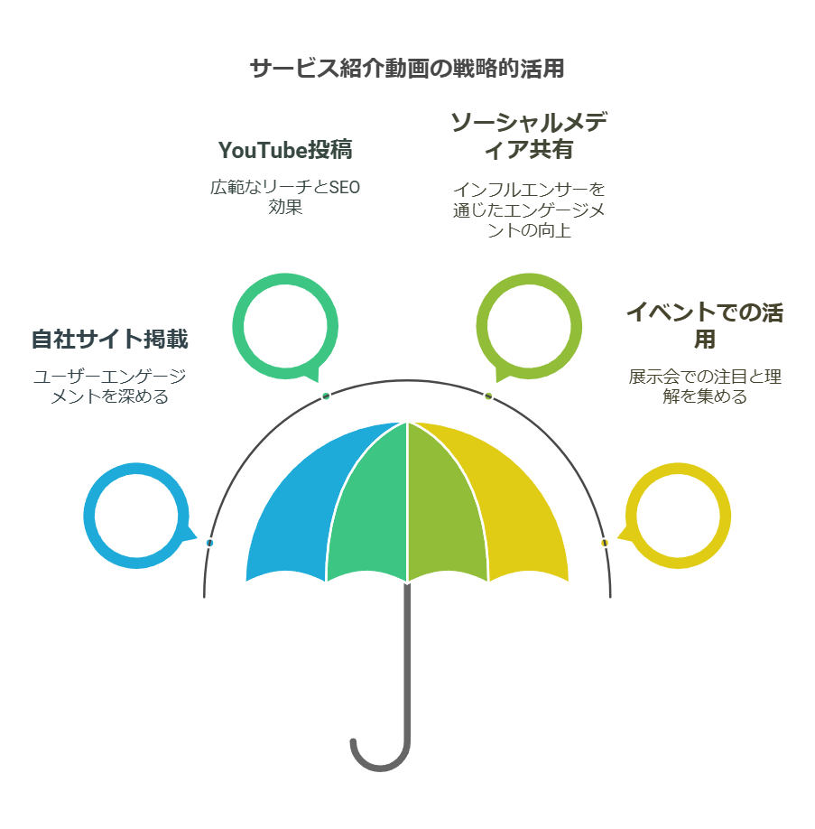 作成したサービス紹介動画は、様々な方法で活用することで、より多くの潜在顧客にリーチし、サービス理解を深め、最終的にはコンバージョンへと繋げることができます。効果的な活用方法を理解し、動画マーケティング戦略を成功させましょう。