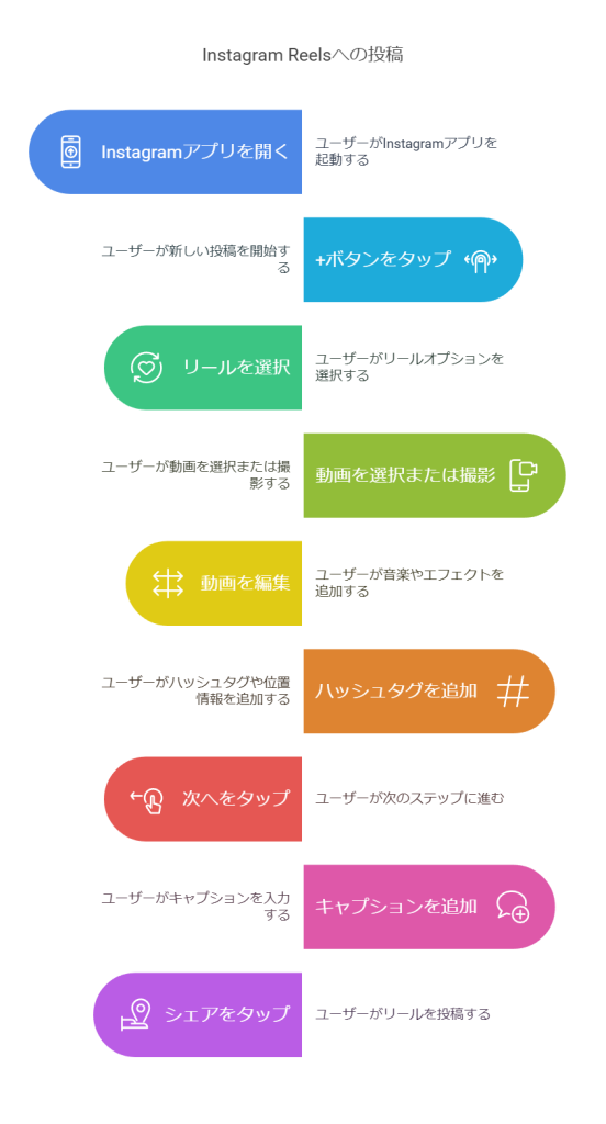 Instagram Reelsへの動画投稿も、アプリ内で簡単に行えます。